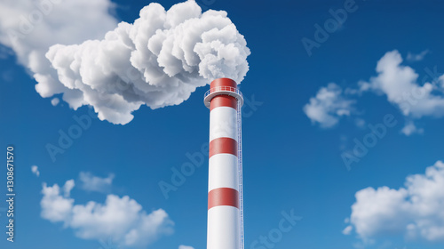 industrial chimney emitting thick smoke against a vibrant blue sky