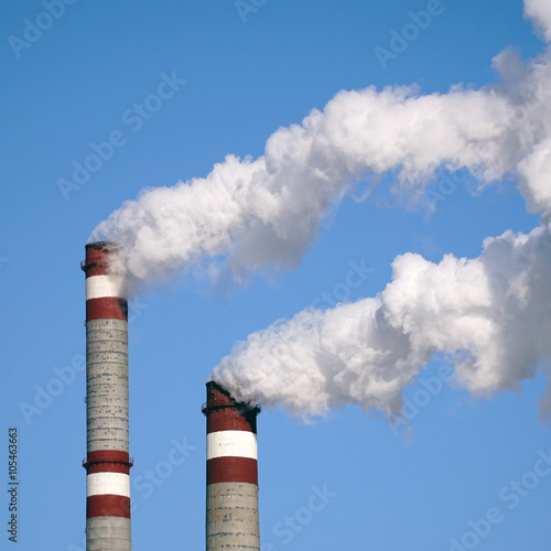 industrial chimneys emits toxic pollutants into the sky polluting environment