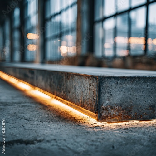 Industrial concrete walkway with warm lighting