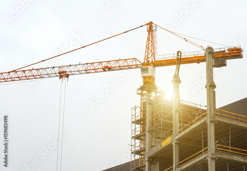 Industrial construction crane in the city.