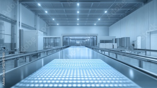 Industrial conveyor belt cleaner with high-speed rollers and automatic drying system, factory setting.