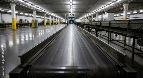 Industrial conveyor belt system in large warehouse