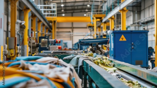 Industrial Conveyor Belt with Scrap Materials in a Factory