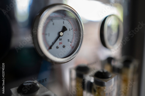 Industrial equipment - measuring sensor. Pressure Testing Technology. Round tool scale with arrow