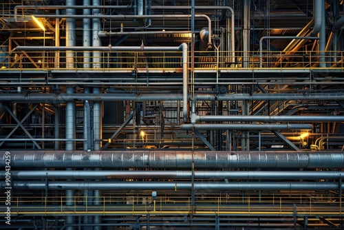 industrial landscape showcasing intricate networks of pipelines and pipe racks the complex structure of a petroleum or chemical plant creates a striking geometric composition