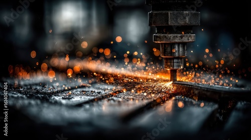 Industrial metal cutting. Sparks fly as a machine cuts metal