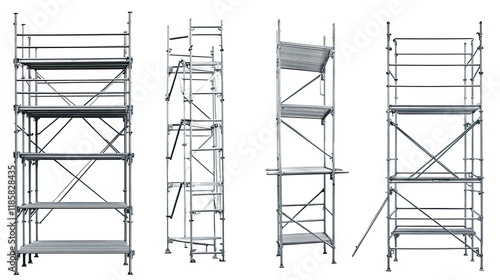 Industrial Metal Scaffolding Structures Isolated on White Background for Construction and Building Projects