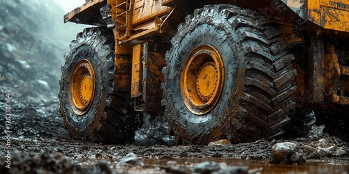 Industrial Mining Machinery with Dirt-Covered Steel Components