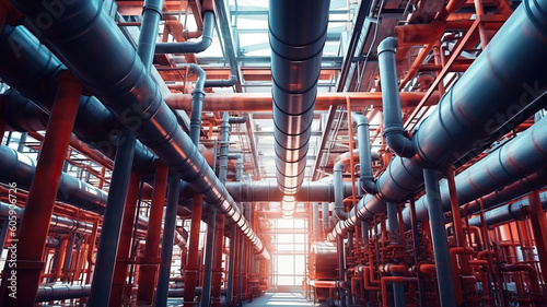 industrial pipe factory building machinery pipes structure. Generative Ai