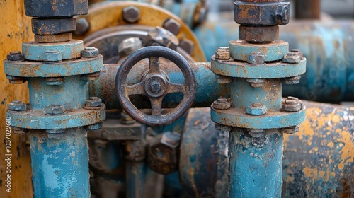 Industrial pipes, valves, machinery, close-up
