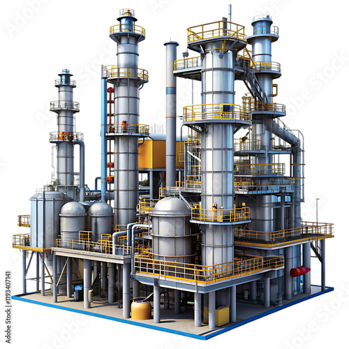 Industrial Refinery Plant Detailed 3D Model Steel Structure Oil Gas Metal Pipes Tanks