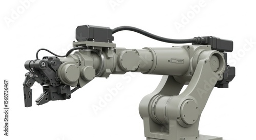 Industrial robot arm, gray, isolated