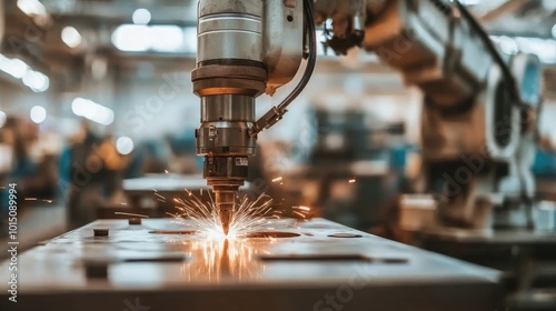 Industrial Robot Cutting Metal with Sparks Flying