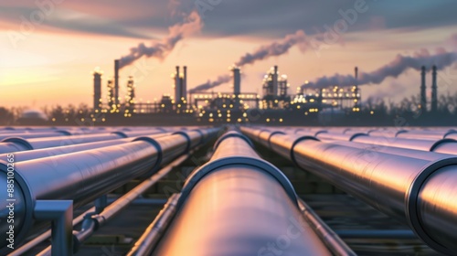 Industrial Sunset: Pipelines Leading Towards a Factory