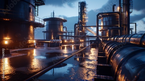 Industrial tanks and pipelines at sunset symbolize efficient fuel oil storage solutions.