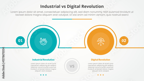 industrial vs digital revolution comparison opposite infographic concept for slide presentation with big circle outline horizontal with flat style