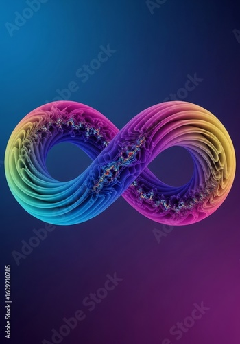 Infinite Rainbow Loop - A vibrant rainbow colored infinity symbol, in a smooth, 3D against a dark purple and blue gradient background
