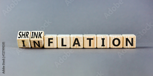 Inflation or shrinkflation symbol. Concept words Inflation Shrinkflation on beautiful wooden blocks. Beautiful grey table grey background. Business inflation shrinkflation concept. Copy space