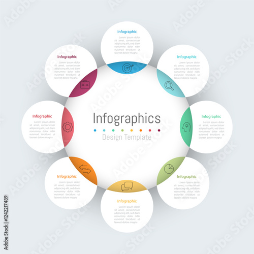Infographic 8 options design elements for your business data. Vector Illustration.