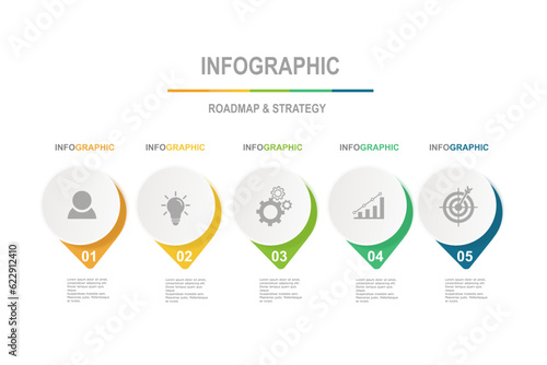 infographic elements template, business concept with 5 steps , minimal multi color check in sign for workflow layout, diagram, annual report, web design.Creative banner, label vector
