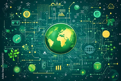 Infographic on the impact of technology on the environment, emphasizing both positive innovations and negative effects