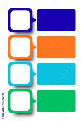 Infographic Template design - Collection of four colorful speech bubbles and rectangular text boxes isolated on transparent background