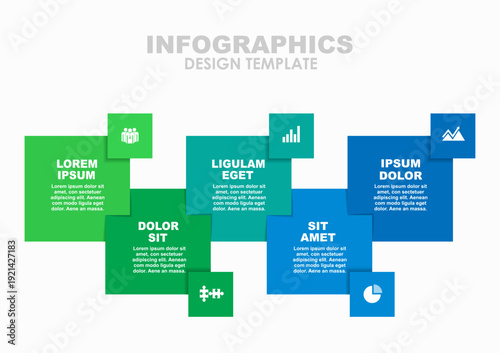 Infographic with five blocks and labels, for structured data presentation or business communication. Vector illustration.