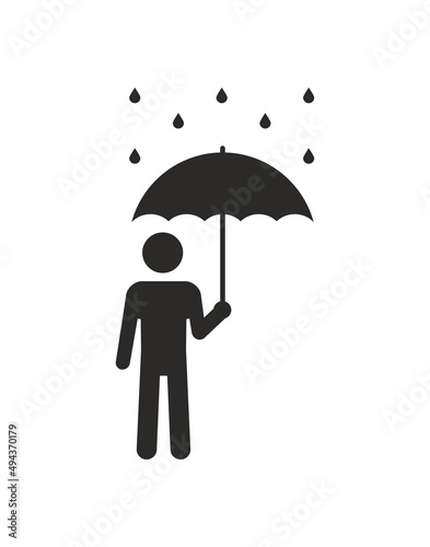 Infographics. A man stands under an umbrella. An umbrella protects a man from bad weather. Raindrops fall on an umbrella.