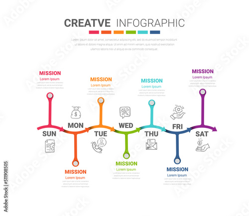 Infographics element design for all day, can be used for Business concept with 7 options, steps or processes.