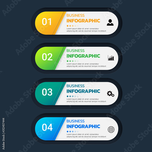 Infographics template 4 options with horizontal banner, can be used for workflow layout, diagram, website, corporate report, advertising, marketing. vector illustration.