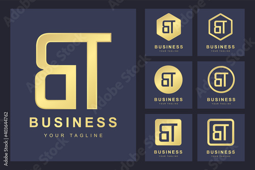Initial Letter BT with Several Version, Elegant Golden Logo Template