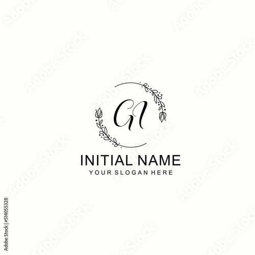 Initial letter GI handwriting with floral frame template
