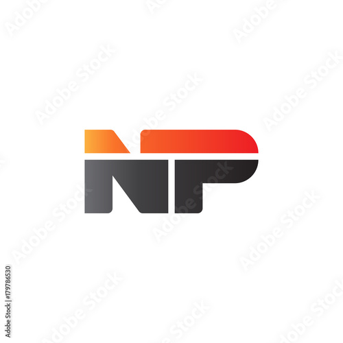 Initial letter NP, straight linked line bold logo, gradient fire red black colors