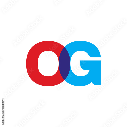Initial letter OG, overlapping transparent uppercase logo, modern red blue color