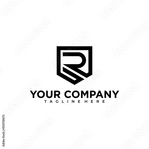 Initial Letter R Shield Monogram logo Concept sign icon symbol Element Design Line Art Style. Security, Heraldic, Guard Logotype. Vector illustration template