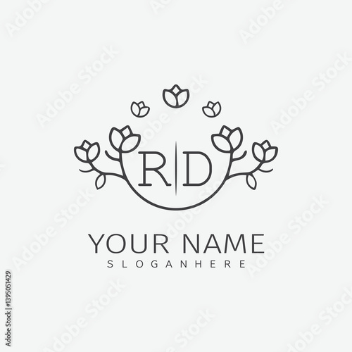 initial monogram wedding with creative circle line flower.