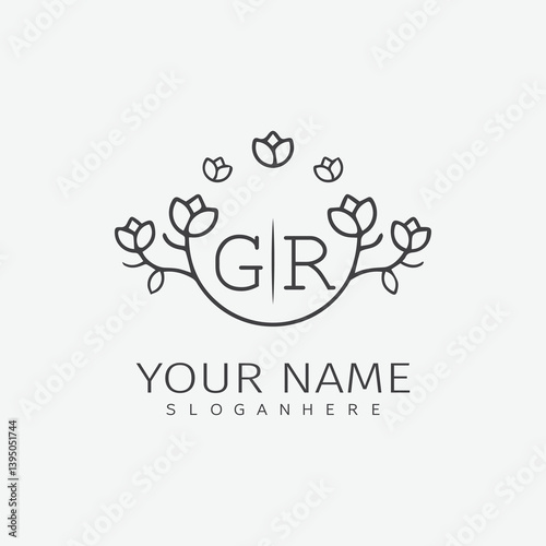 initial monogram wedding with creative circle line flower.
