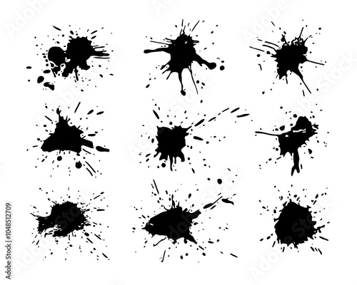 Ink splash with dynamic splatter, grunge abstract paint drop with streaks,splashes,spots,dots,streaks, creative liquid blot design. Isolated.Vector illustration