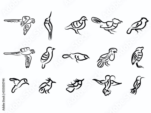 ink wash painting triopical bird clipart set.brush paint bird icon doodle illustration