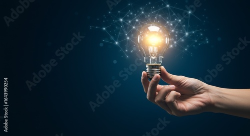 Innovation Concept Glowing Light Bulb and Connected Lines in Blue Background