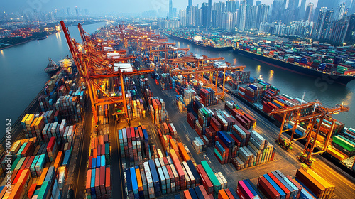 Innovation technology digital future of logistics freight transportation import export concept, Manager using tablet control online tracking cargo delivery distribution on city world map background