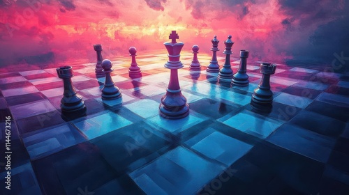 Innovative digital art illustrating a strategic chessboard from an aerial viewpoint, symbolizing astute business planning