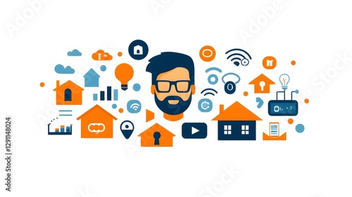 Innovative digital programming devices a futuristic home ecosystem illustration urban setting flat design