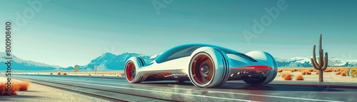 Innovative solarwinged vehicle on highway, ecofriendly transport concept, clear blue sky , Prime Lenses