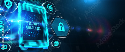 Inscription Security Awareness. Information Security Skills Management Service. Business, Technology, Internet and network concept. 3d illustration