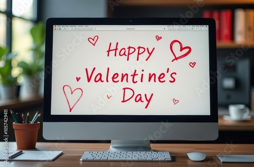 inscription Valentine's Day on the computer monitor, romantic note
