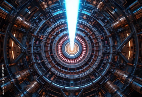 Inside a Futuristic Nuclear Fusion Reactor with a vertical plasma energy beam