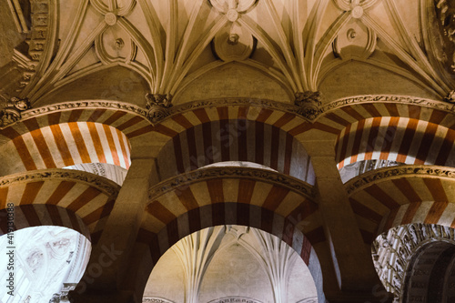 Inside the moorish Cordoba Mezquita Catedral, an impressive gothic and baroque cathedral, built on a mosque in Andalusia, Spain