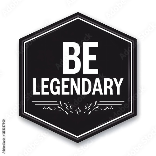 Inspirational Be Legendary Black Hexagonal Motivational Quote Decal Design with Decorative Line Elements for Personal Development Success Mindset Collection