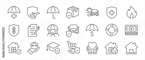 Insurance simple minimal thin line icons. Related health, umbrella, protection, risk. Editable stroke. Vector illustration.